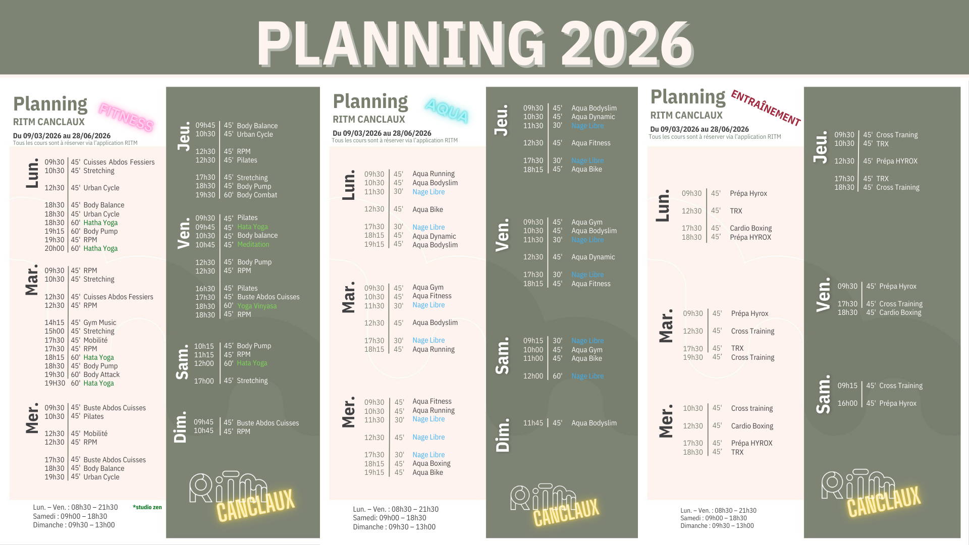 Dim. : 09h30-13h00