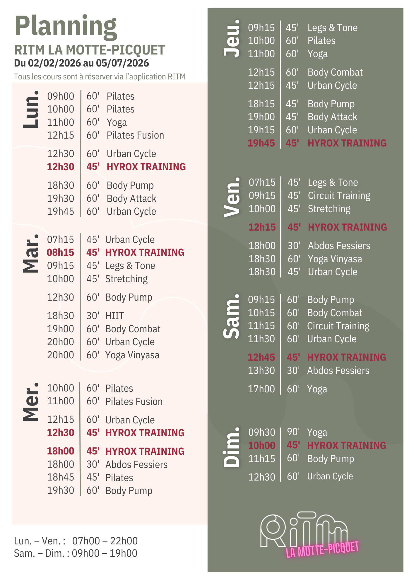 Lun. - Ven. : 07h00-22h00