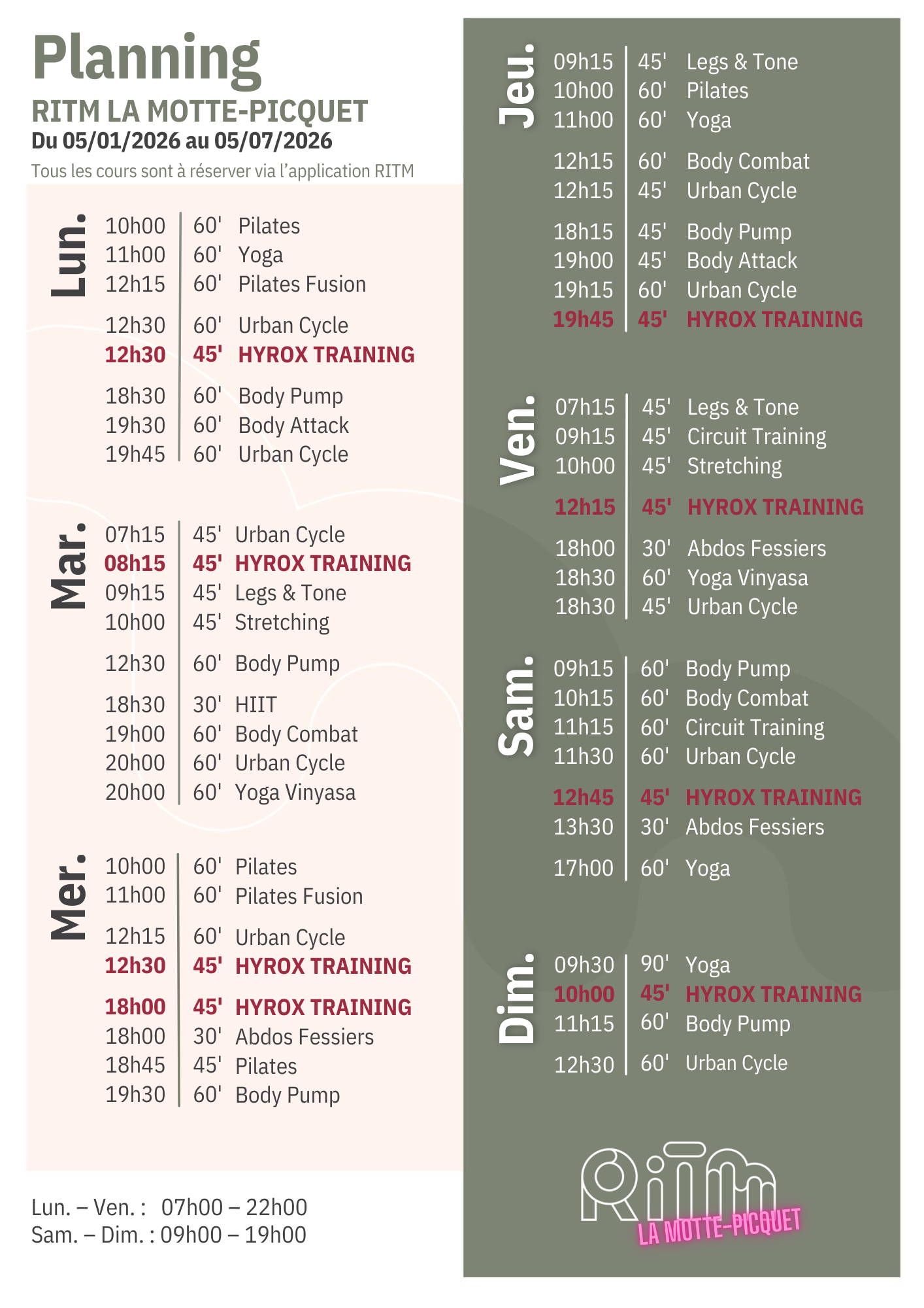 Lun. - Ven. : 07h00-22h00