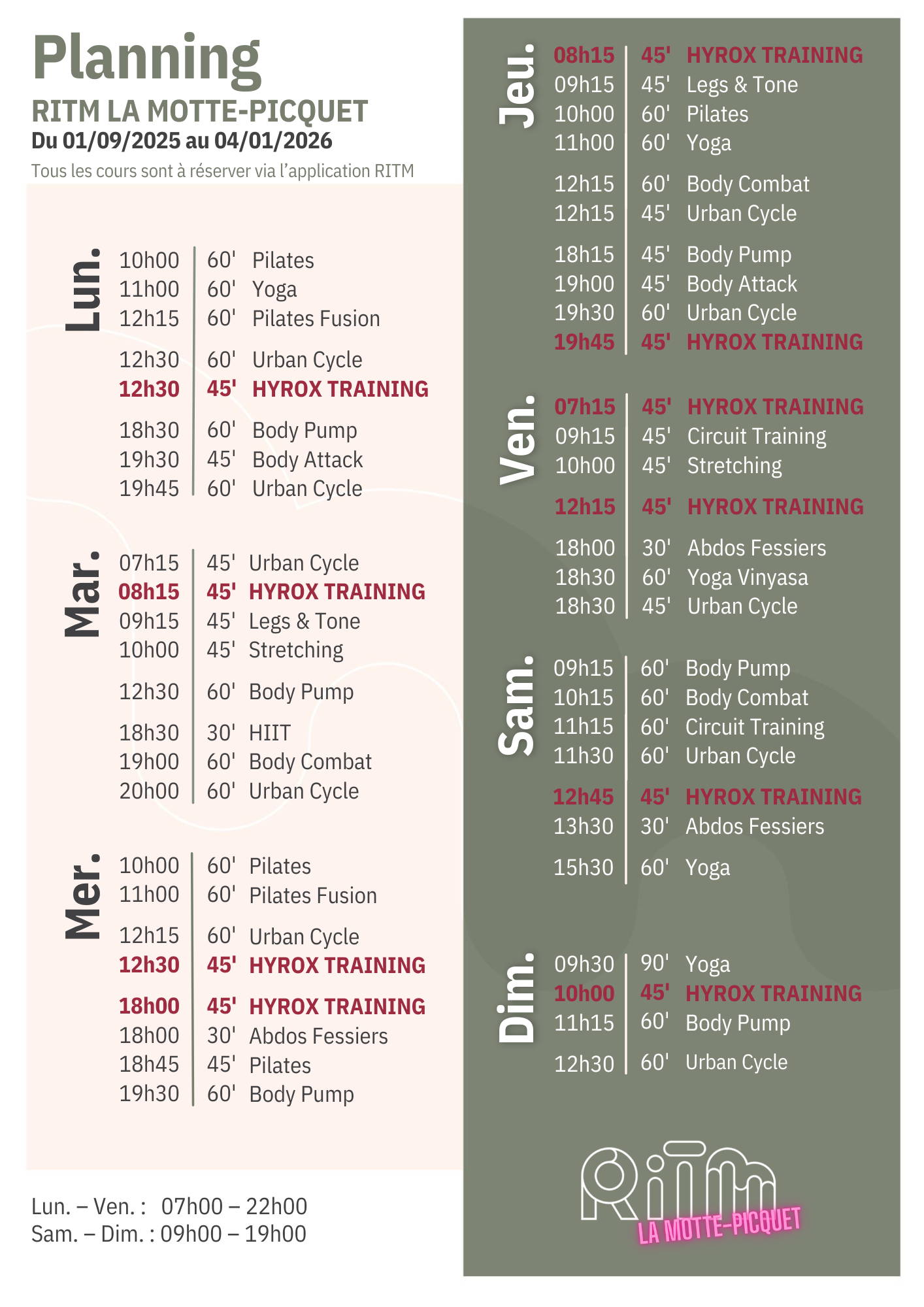 Au programme : plateau de musculation, espace cardio, studio de cycling, circuit MILON, FIVE et plus de 50 cours collectifs par semaine !
